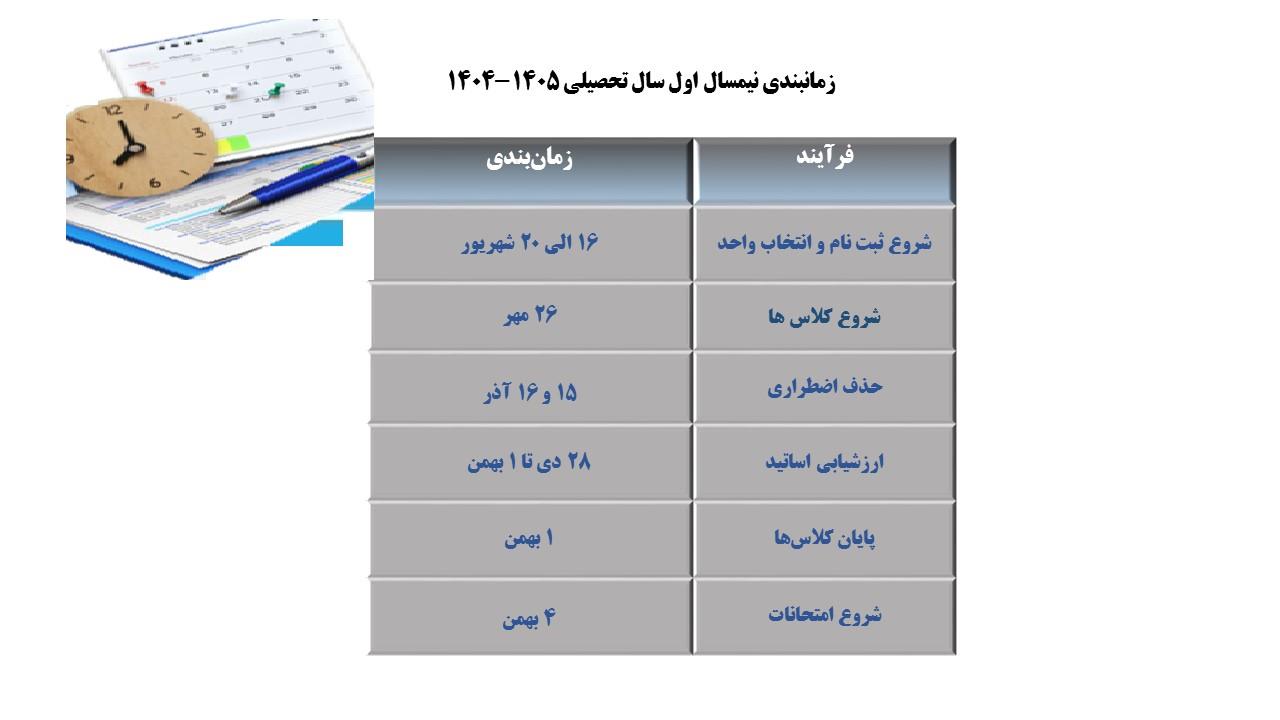 زمانبندی نیمسال اول 1405-1404