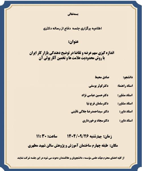 اطلاعیه دفاع آقای صادق محیط دکتری علوم اقتصادی