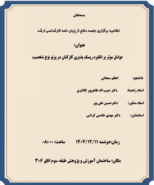 اطلاعیه دفاع خانم اعظم سبحانی کارشناسی ارشد مدیریت دولتی