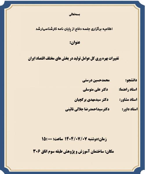 اطلاعیه دفاع آقای محد حسین درستی-دانشجوی کارشناسی ارشد مهندسی صنایع