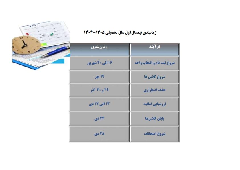 زمانبندی نیمسال اول 1405-1404